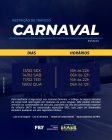 - 14 de fevereiro (sábado) e 18 de fevereiro (quarta-feira): das 6 horas às 12 horas